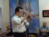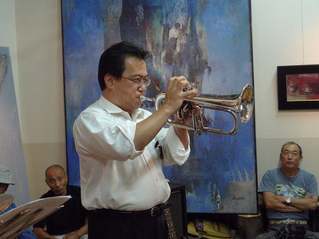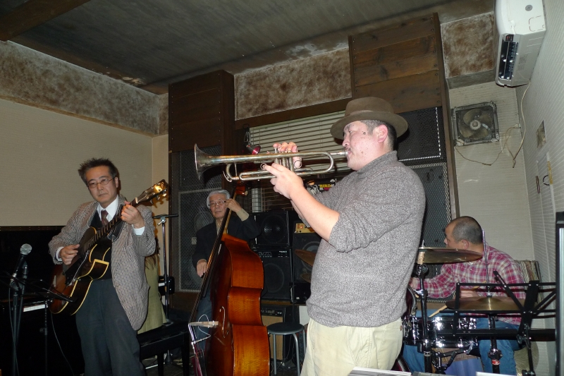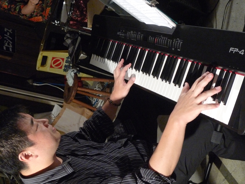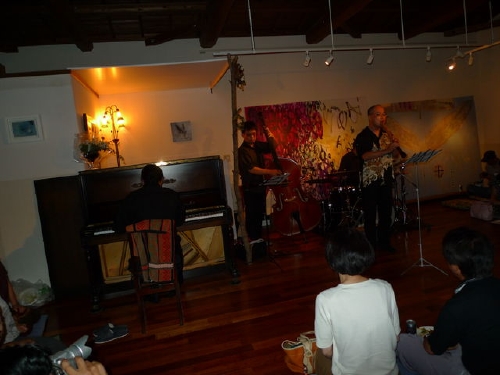 大分のミュージシャン、都留さん(key)、佐藤さん(tp)、安藤さん(p)他を交え、深夜までジャムセッションが続く・・・