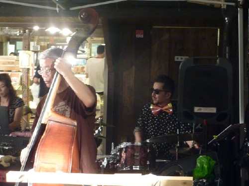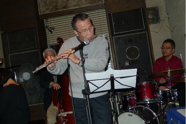 左から山崎箜山(尺八)立花洋一(p)木下恒治(ds)丹羽肇(b)