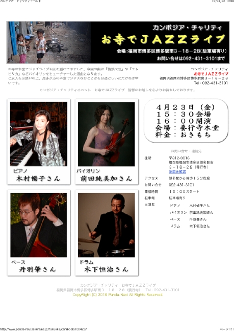 藤舎元生(篠笛)杵屋弥佶(三味線)森下香蘭(ヴィオラ)植原健司(ピアノ)木下恒治(パーカッション)