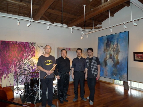 絵画をバックに「流瞬風」の演奏が