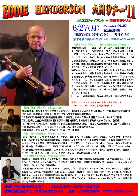 7月となり事後報告となりますが、Eddie Henderson九州ツアー2011は無事終了しました!!
